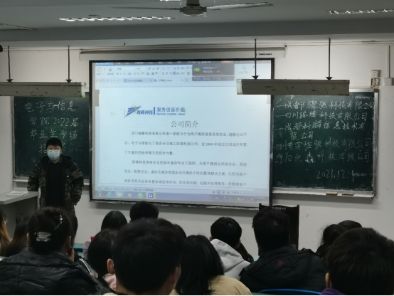 12月1日,成都骤驰科技有限公司、四川路腾科技有限公司、成都科麟信息技术有限公司、四川奇安旌服科技有限公司、绵阳优森科技有限公司,来beat365官网召开专场招聘会,共计提供岗位30余个。beat365官网100余名2022届信息安全与管理、计算机网络技术、软件技术、动漫制作技术、数字媒体应用技术、物联网应用技术等专业的同学积极参与公司招聘。(图/文 王世军)