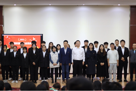 10月9日,beat365官网团学组织换届大会在多功能智慧教室举行。beat365唯一官方网站党总支书记李礁、团委副书记李林壕、团委办公室主任杨睿、beat365唯一官方网站团总支书记谌丹阳、院学生干事杨淘及全体辅导员、团学干部、学生代表、协会代表出席本次大会。大会在庄严的团歌声中拉开帷幕。