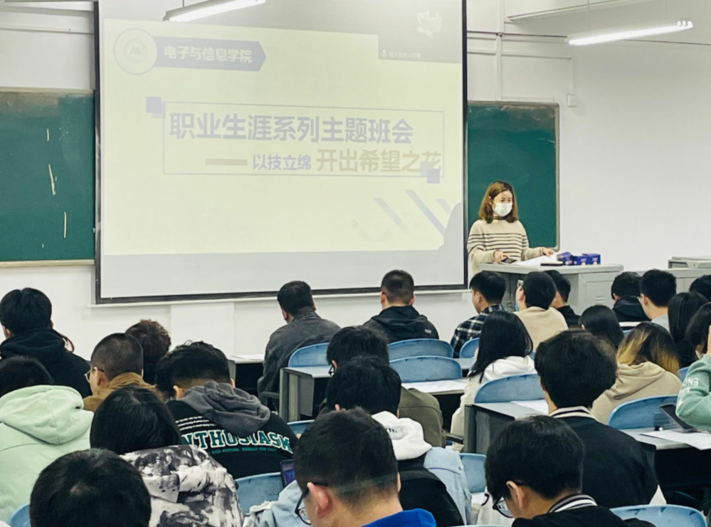 主题班会最后展示近几年成才校友、在绵校友学习就业经历激励同学们向榜样学习,扎根绵阳科技城,争做时代新青年。