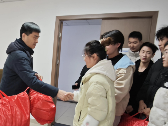 派发结束后,李川鼓励全体同学要将关怀转化为动力,珍惜大学时光,树立远大目标,勤奋努力学习,不惧眼前困难,立志成才报国,积极参与学习实践活动,不断提升综合素质,用知识改变命运,用奋斗成就未来,成为传递爱与温暖的践行者,以自己的实际行动回报国家和社会。