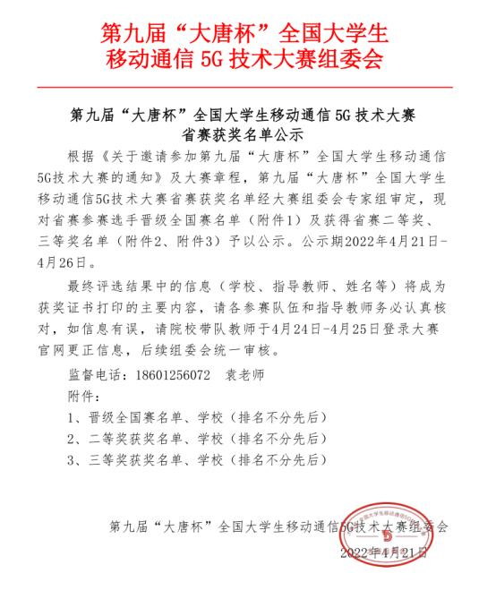 据悉,“大唐杯”全国大学生移动通信5G技术大赛和中国“互联网+”大学生创新创业大赛、全国大学生电子设计竞赛等高级别赛项同列于教育部中国高等教育学会所公布的“全国普通高校大学生竞赛项目名单”中,“大唐杯”全国大学生移动通信5G技术大赛是目前唯一的通信技术方向竞赛项目。
