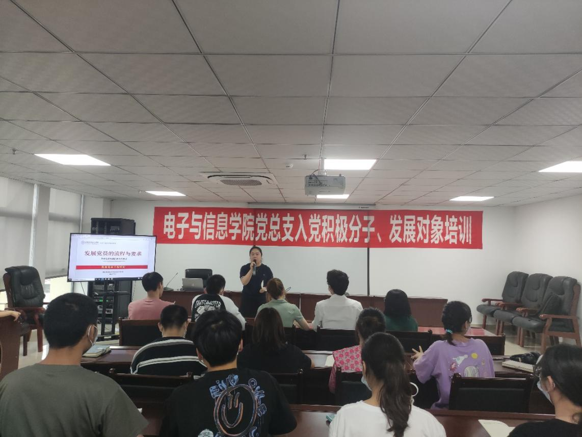 第四党支部副书记黄旭主讲《党员条件及入党程序》,黄旭围绕党员条件及入党程序两个方面的内容进行讲授。详细地讲解了入党条件、党员的义务和党员的权利等内容,引导同学们再次深入学习《中国共产党章程》,端正入党动机,提高党性修养。针对提高党性修养方面,黄旭要求同学们刻苦学习、严于律己、率先垂范。此外,黄旭还对预备党员教育考察和转正程序进行了讲解,使同学们对标准和流程有了更为清晰的认识。
