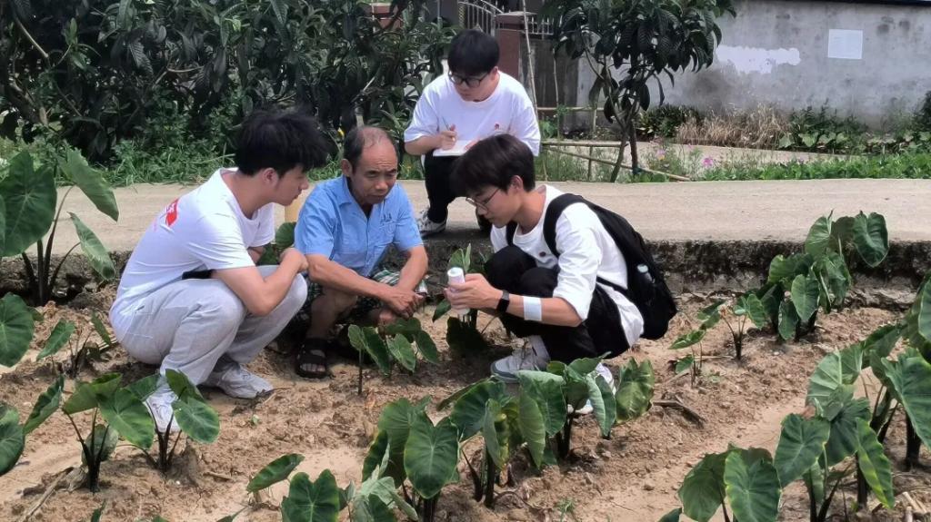会后,在村干部的带领下实践队师生前往田间地头,观察农作物生长及农田分布情况,考察双紫村乡村旅游发展战略及乡村民宿改造情况,并利用学院自行研发的传感器对农田进行实时监测,了解村民在种植过程中遇到的问题与困境,农产品的病虫害情况以及产量、售价、销路等问题。队员们根据调研情况和农科院数据分析模型对农田土壤情况进行了汇报分析,并为双紫村智慧农业和农业现代化发展提出了智能灌溉、远程问诊、智能优化、种养一体化销售平台等一系列智慧农业解决方案。