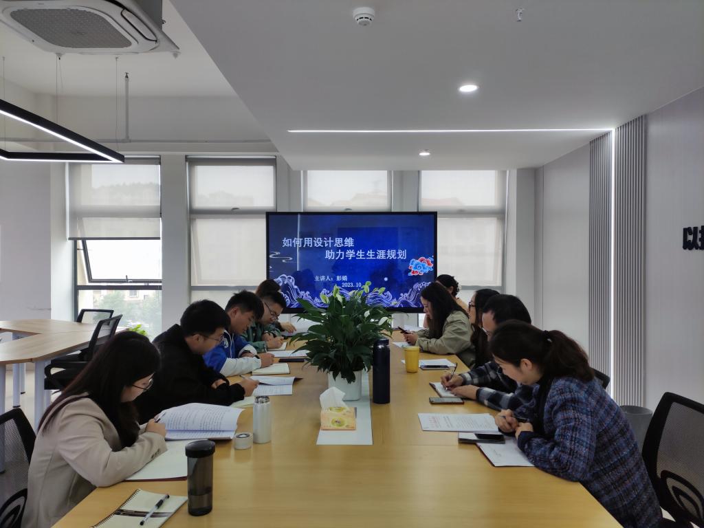 本次活动传达了首届全国大学生职业规划大赛的相关精神,解读大赛规则与要求。彭娟围绕“如何利用设计思维助力学生职业生涯规划”进行生动讲解,分享使用理论工具为学生提供具有科学性的职业生涯规划指导的案例方法,她鼓励各位辅导员提升自己的职业生涯规划能力,为今后更好地为学生职业规划教育打好基础。黄馨逸对大赛的就业赛道进行详细解读,分析了就业赛道的比赛内容、比赛环节、参赛材料、评审标准等。