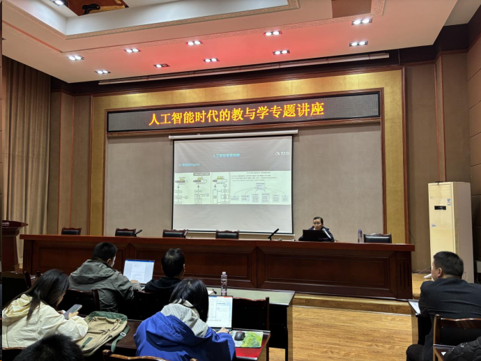 会后,江金凤与在场教师进行了互动交流。老师们表示通过这次讲座对人工智能有了更深入地了解,也对人工智能辅助教学充满了期待。(图/文:向兵 审核:解书凯)
