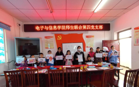 陈岚莎、李世玉老师,以红色小故事引入绘画主题,指导双紫村20余名孩子绘制了自己挥舞着国旗站在天安门前的场景,为孩子们种下一颗爱党爱国的种子,树立远大的理想目标。
