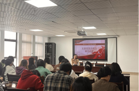 而后各党支部分别围绕 “党员发展流程及常见问题”“党史学习教育”“学习先进党员事迹,争做时代先锋”“新时代科技自立自强”“学深悟透担使命,青年力量有作为”“当前就业形势与实施就业优先战略”等主题来对培训学员展开授课。