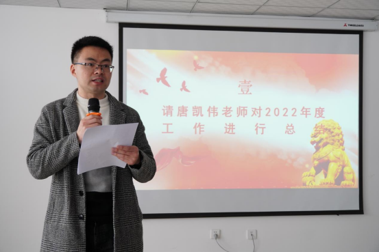 会上,唐凯伟老师代表学院团总支对2022年度团学工作进行总结。2022年中,团总支持续推进思想教育,不断加强和完善制度建设,各项工作井然有序开展。他提出,在今后工作中团学会各部门要继续创新,发挥优势,找准自身定位,不断开创团学会工作新局面。